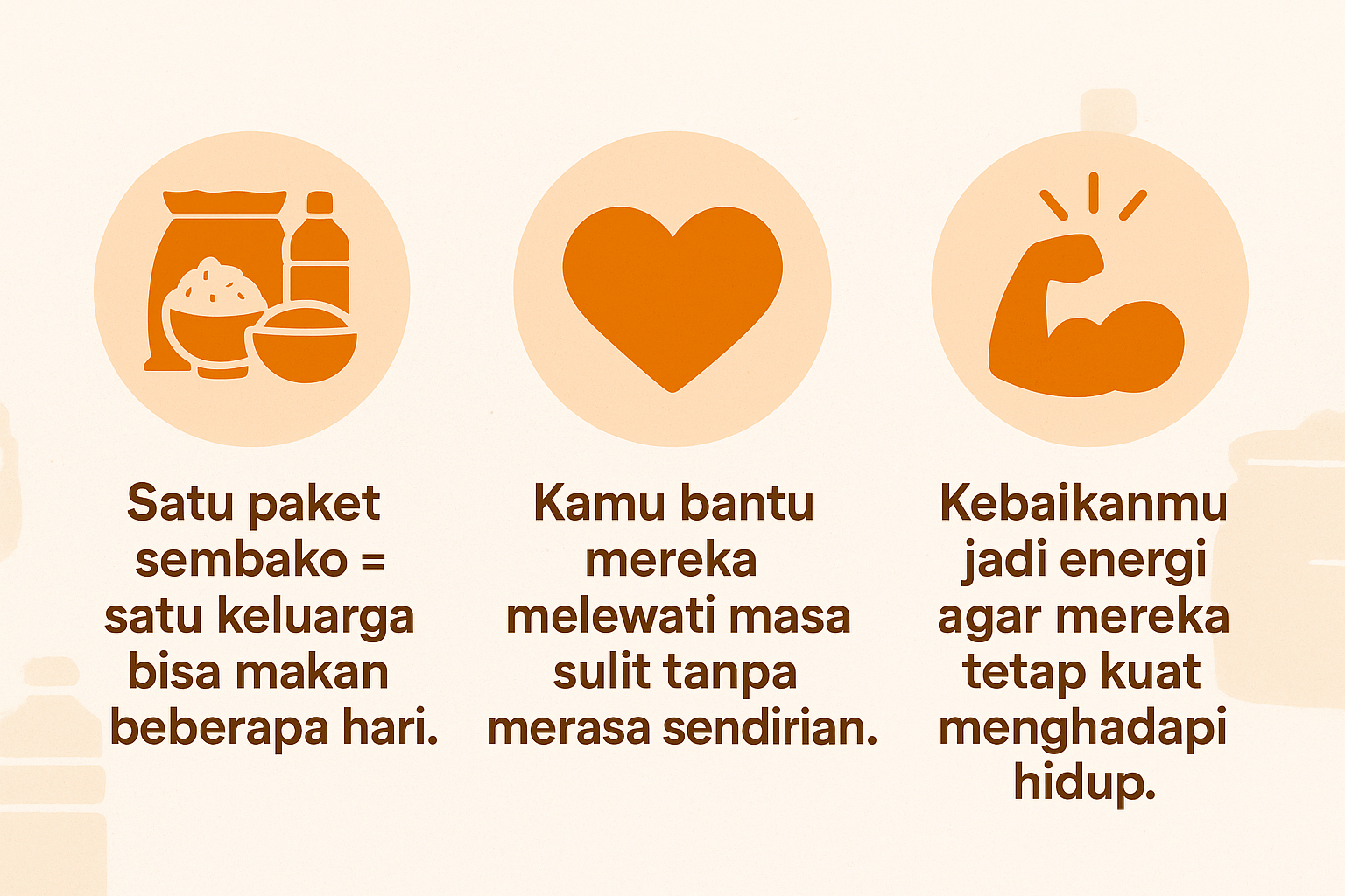 Lewat Paket Sembako untuk Keluarga Dhuafa, Lansia, Pekerja Harian, hingga Penyintas Bencana.